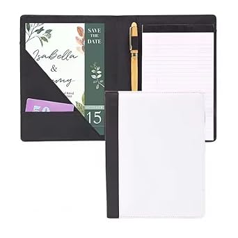 Stay organized in style with this blank sublimation padfolio, perfect for personalized designs. The front white canvas is ready for vibrant heat transfers, while the inside features a lined notepad, pen loop, and pockets for notes or business cards. Ideal for students, professionals, or custom gift-making.